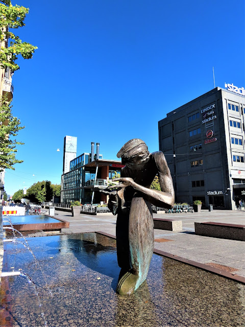 Naturligtvis gick jag en sväng via Saluhallen och alla förföriska matdofterna där inne. Tyvärr fanns det numera flera tomma lokaler/försäljningsställen och jag gick och hoppades att nya affärsidkare snart dyker upp - för Saluhallen är en pärla! Nu hade i alla fall lunchställena börjat fyllas med de första hungriga matgästerna så det började bli lite mera liv och rörelse.