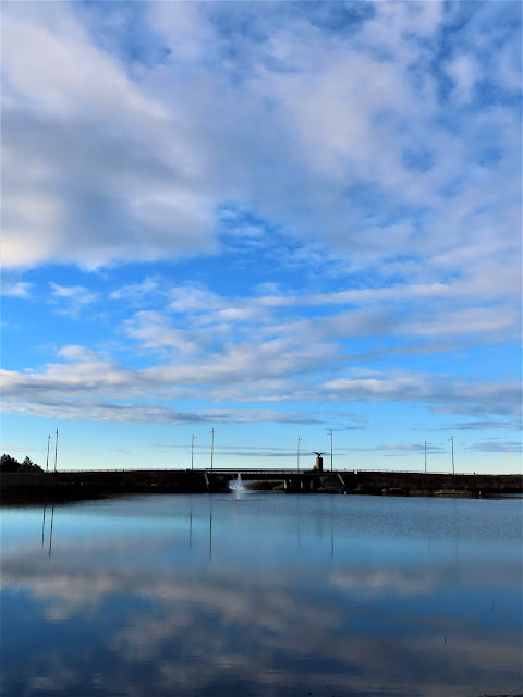 Sedan vandrade jag runt i affärer inne i staden en stund. Ibland kom åter en regnskur, så jag var tvungen att söka skydd inne i någon affär. Men nej, det blev inga stora utgifter.... Under bilturen hem igen gick bilens vindrutetorkare på högvarv. När jag skulle stiga ur bilen hemma på gårdsplanen då sken solen redan. Vädret är ombytligt - och allt för kylslaget! Skall det fortsätta så här blir det en lååång höst...