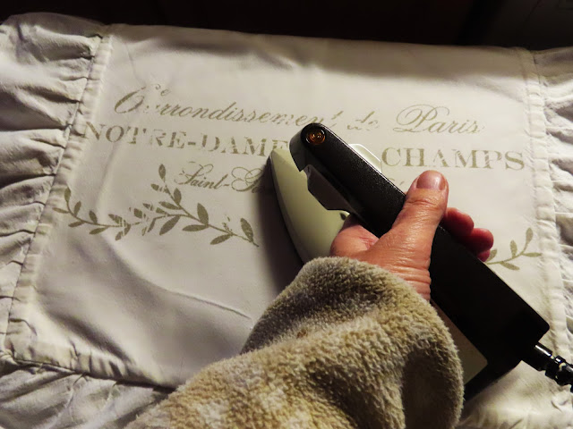 Jag har julstädat under flera dagar, eftersom jag tar det lugnt med städningen och vilar långa stunder emellanåt. Men till julen måste det ändå städades bakom spisen, blommorna måste våttorkas och sittunderläggen på köksstolarna skall tvättas och strykas för att hålla smutsen borta minst ett halvår till. Ja ni vet, det finns saker som bör görs endast några gånger per år och åtminstone till julen! Nu är alla julens gardiner uppe i alla rum, julens mattor är framme och det lyser jul i nästan alla fönster (och efter någon dag tar vi in julgranen, den högg sambon för två veckor sedan...). Apropå fotot ovan, jag är högerhänt, men för att fota måste jag stryka med vänster handen....