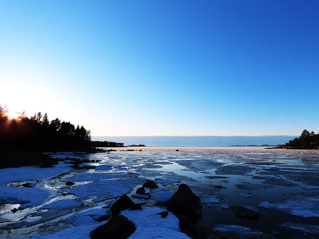 Där stod jag en god stund i det kyliga vädret (runt nollan). Solens kvällsstrålar nästan i ögonen och ingen vind (trots att isflaken lätt guppade i vattnet...).